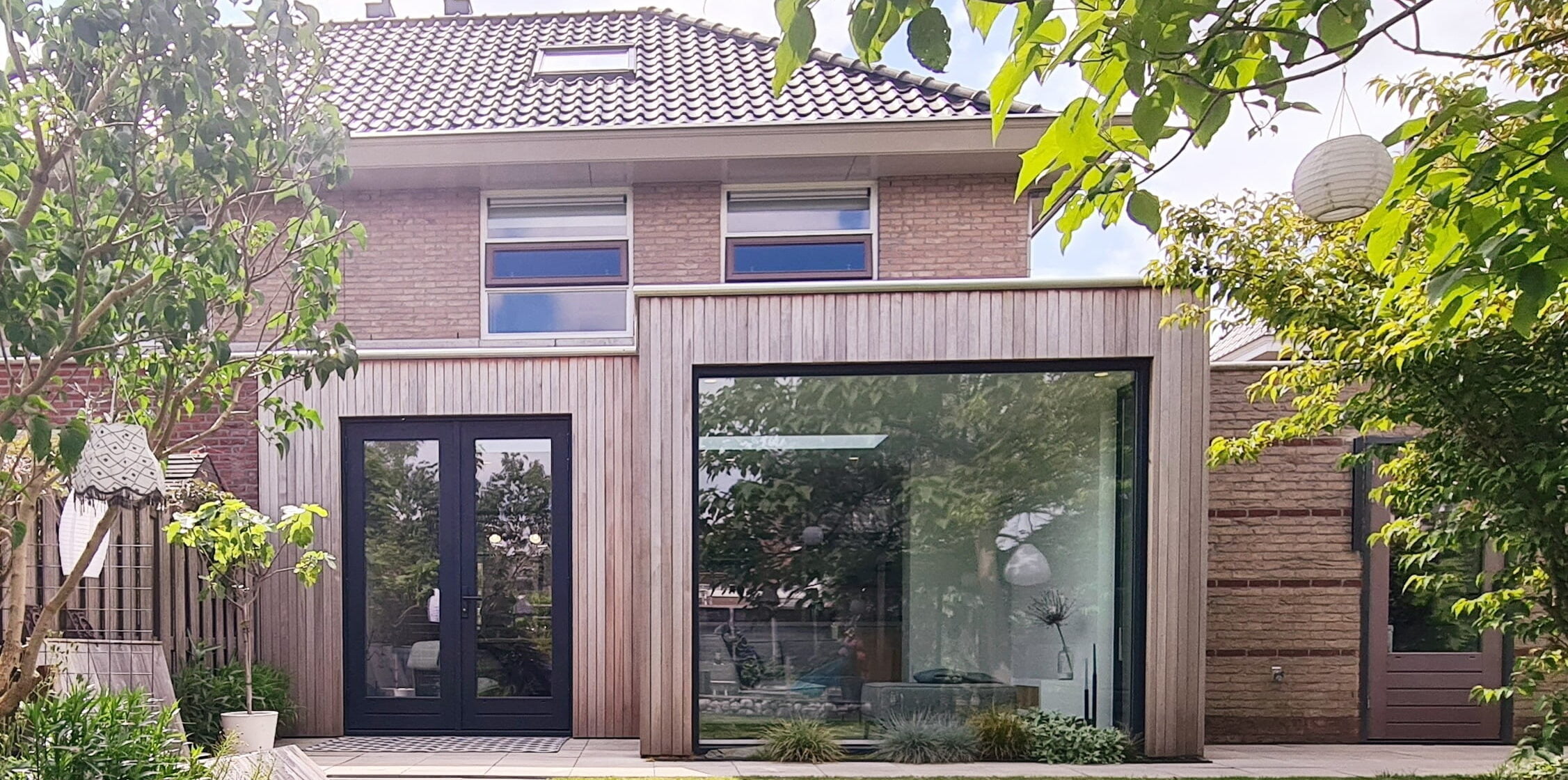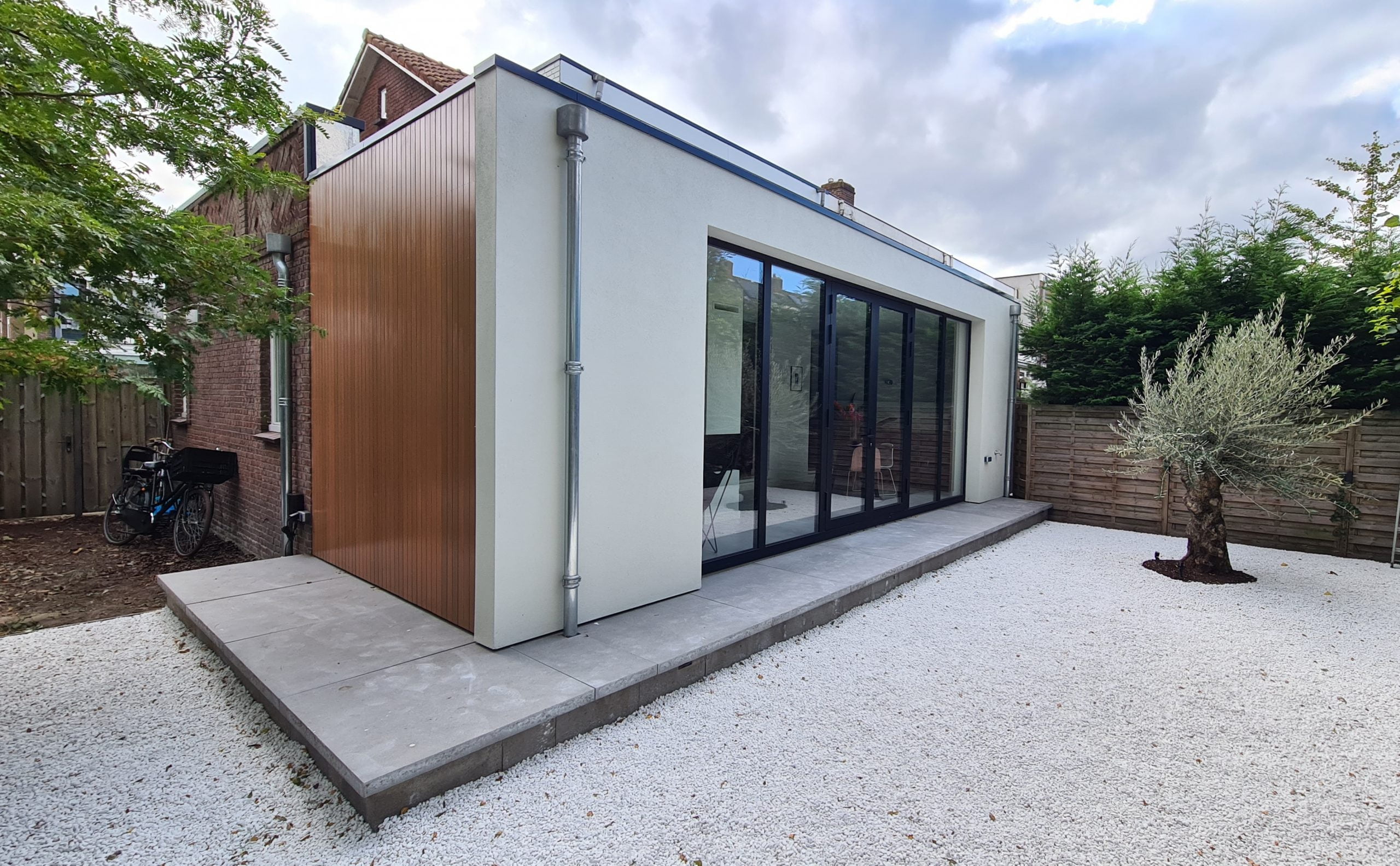 Zomaar enkele voor- en nadelen opgesomd. Omdat meerdere disciplines tegelijk hun werk verrichten scheelt het eigenlijk niet zoveel op locatie. Een paar dagen meer dan volledig prefab, maar wel met het beste uit de 2 werelden. In het eindconcept mag wat ons betreft niet te zien zijn dat de aanbouw prefab is geplaatst. Daarnaast zijn wij met dit concept net zo flexibel als de traditioneel bouwer. Prefab, maar dan met alle voordelen van traditioneel bouwen erbij.